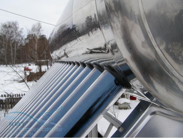 Такие системы работают без давления. Подключение к водопроводу производится через запорный клапан, который поддерживает уровень воды в баке, по такому же принципу, как и в бачке унитаза. Т. к. в качестве теплоносителя используется вода, такие коллекторы называют сезонными. В европейской части России их можно использовать в период с апреля по октябрь, т.е. до наступления ночных заморозков.