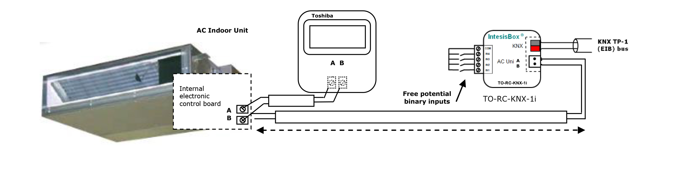 Интерфейс TO-RC-KNX-1i обеспечивает полностью двунаправленное управление всеми параметрами кондиционеров Toshiba серий Commercial и VRF.