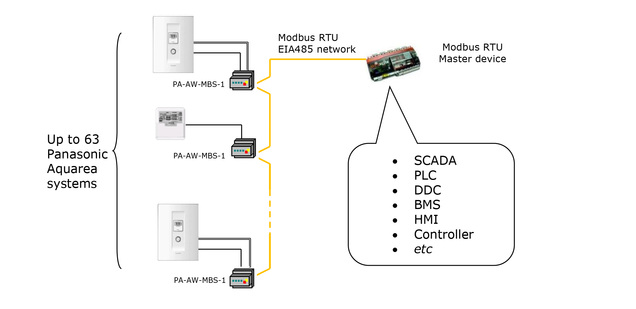 Шлюз для интеграции в сеть Modbus RTU кондиционеров Panasonic серии Aquarea Air-to Water в сетях Modbus RTU (RS-485).