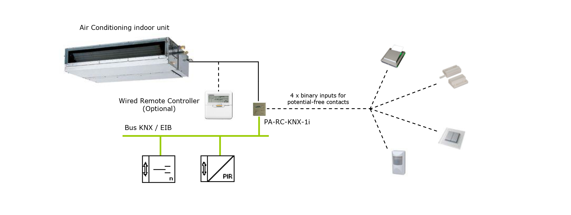 Интерфейс PA-RC-KNX-1i обеспечивает полностью двунаправленное управление всеми параметрами кондиционеров Panasonic серий FS и FSM.