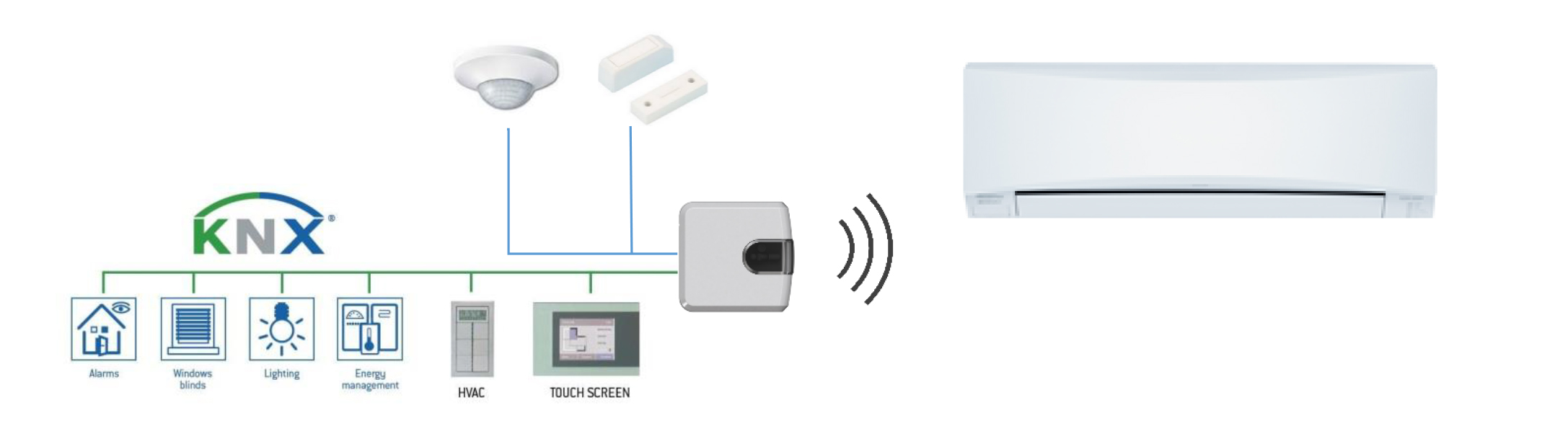 IS-IR-KNX-1i совместим с более чем 40 различными брендами систем кондиционирования воздуха. Устройство устанавливается рядом с кондиционером и отвечает на использование в инфракрасных кодах. Благодаря встроенному инфракрасному приемнику он также может записывать изменения, сделанные пользователем через собственный пульт дистанционного управления ИК-пультом и передает их в сеть KNX.