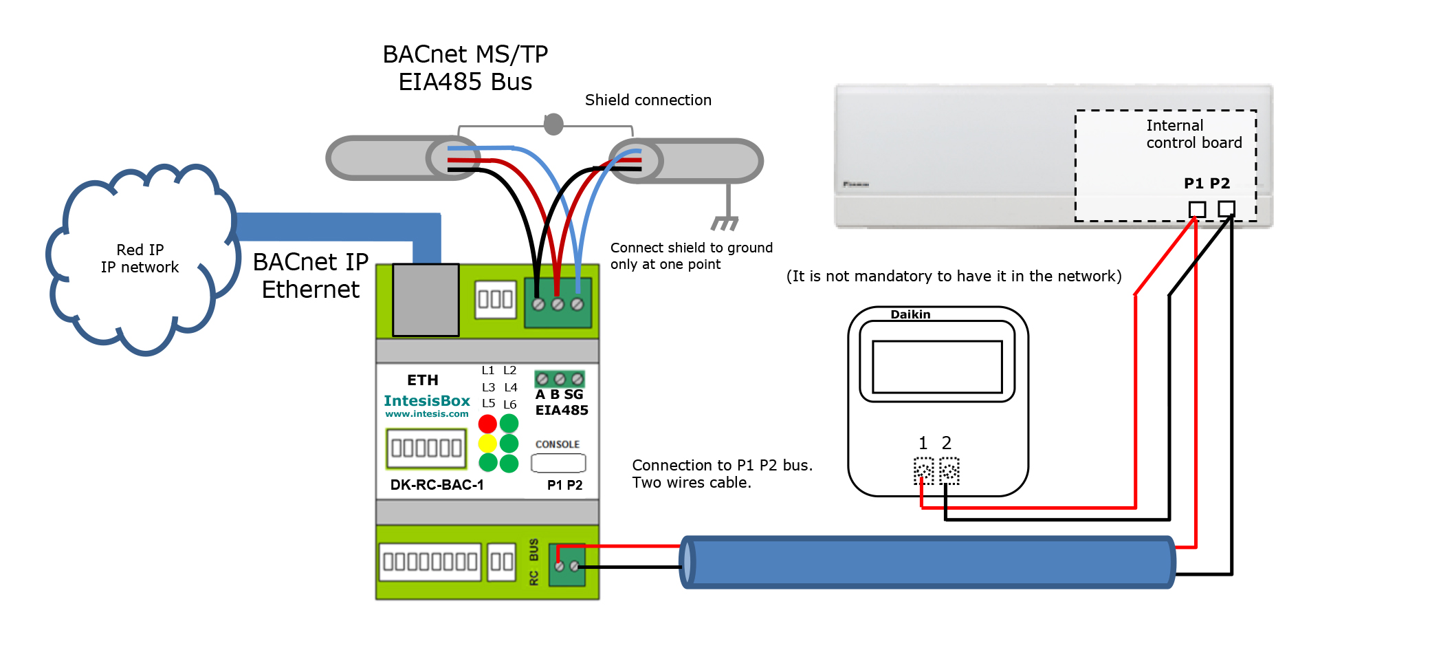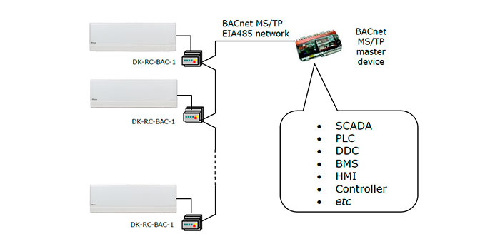 Целью интеграции является мониторинг и управление системой кондиционирования Daikin, удаленно, из центра управления с использованием любого коммерческого SCADA или программного обеспечения для мониторинга, которое включает драйвер BACnet или подключение к другим устройствам BACnet для автоматизации. IntesisBox предоставляет внутренние блоки системы кондиционирования Daikin через независимые объекты BACnet.