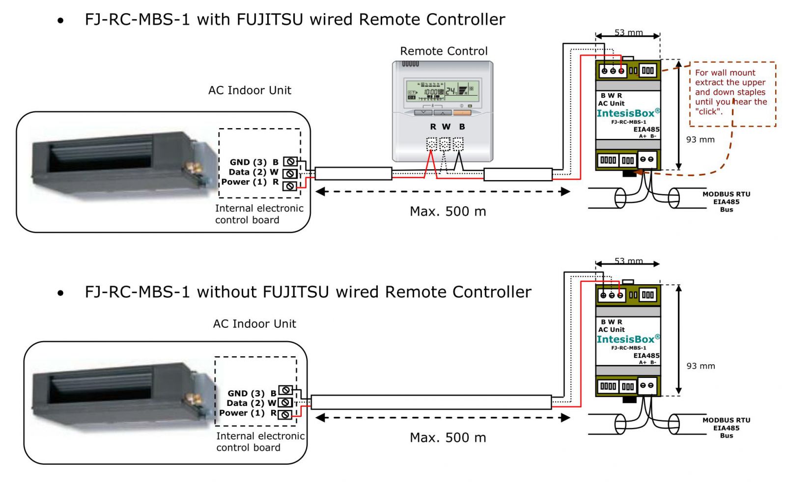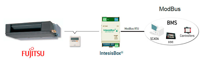 IntesisBox FJ-RC-MBS-1 ( арт.INMBSFGL001R000 ) позволяет полностью и полностью контролировать и контролировать все функциональные параметры кондиционеров Fujitsu VRF в сетях Modbus RTU (RS-485)