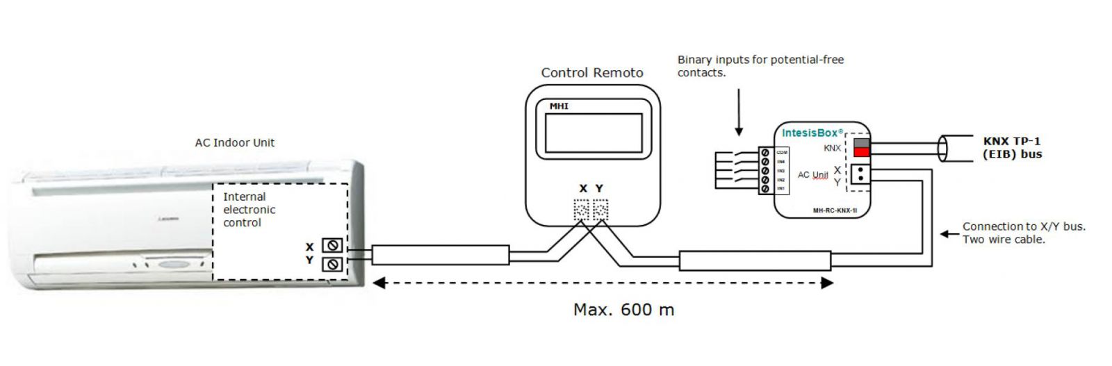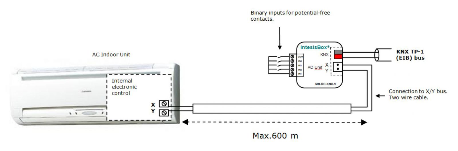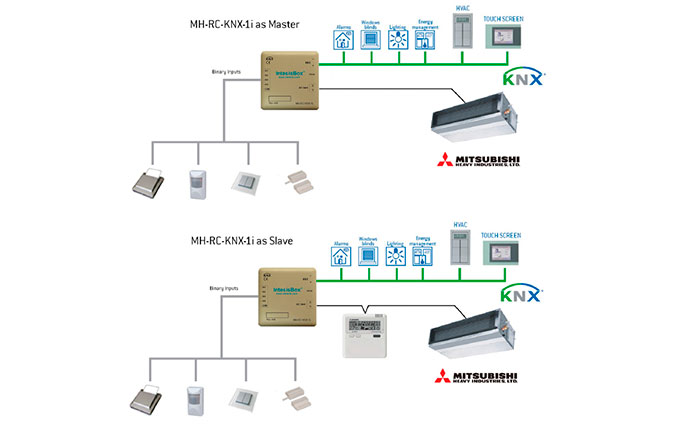 Интерфейс IntesisBox® MH-RC-KNX-1i обеспечивает двунаправленное управление всеми параметрами кондиционеров системы Mitsubishi Heavy Industries серий FD, KX6 и KXR6 из KNX.