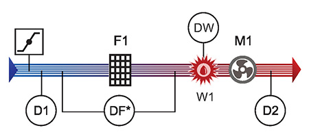 ** В оборудовании стандартного исполнения, контроль над фильтром осуществляется по времени отработки, при необходимости, возможно, установить датчик дифференциального давления.