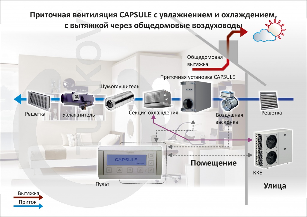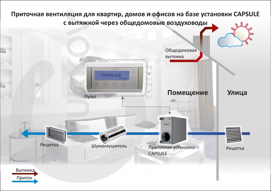 • индивидуальная настройка приточного и вытяжного вентилятора, для компенсации дисбаланса в помещении