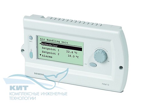 Модуль оператора РХМ10 используется для контроля и эксплуатации компактных и модульных контроллеров РХ. Устройство имеет дружественный к пользователю интерфейс, который позволяет осуществлять работу нажатием одной кнопки (нажимаемого регулятора с круговой шкалой) с использованием высококачественного дисплея. Модуль оператора может быть установлен на панели управления или на модульном контроллере. Модуль PXM10 идеально подходит для постоянной работы на месте эксплуатации установки в качестве альтернативы интерфейсу пользователя РХМ20. Он используется с компактными и модульными контроллерами РХС…, а также с PXR… (подходит для работы с небольшим количеством контроллеров).